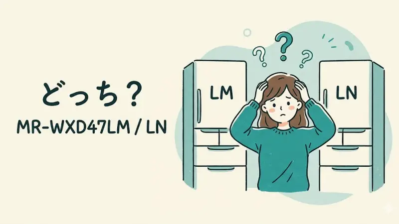 結局どっちを選べばいい?最短でわかる結論 「MR-WXD47LMとLN、どっちを選べばいいの?」と迷っていませんか。 型落ちモデルでいいのか、それとも新しい方を選ぶべきなのか…と悩んでしまいますよね。 特に冷蔵庫は一度買うと長く使う家電なので、失敗したくない気持ちは当然です。 この記事では、そんな不安を解消できるように「結局どっちを選べばいいのか」を最初にハッキリお伝えします。 結論から言うと、違いはシンプルです。 違いはここだけ|迷う必要がない理由 MR-WXD47LMとLNの違いは、実はとてもシンプル ...